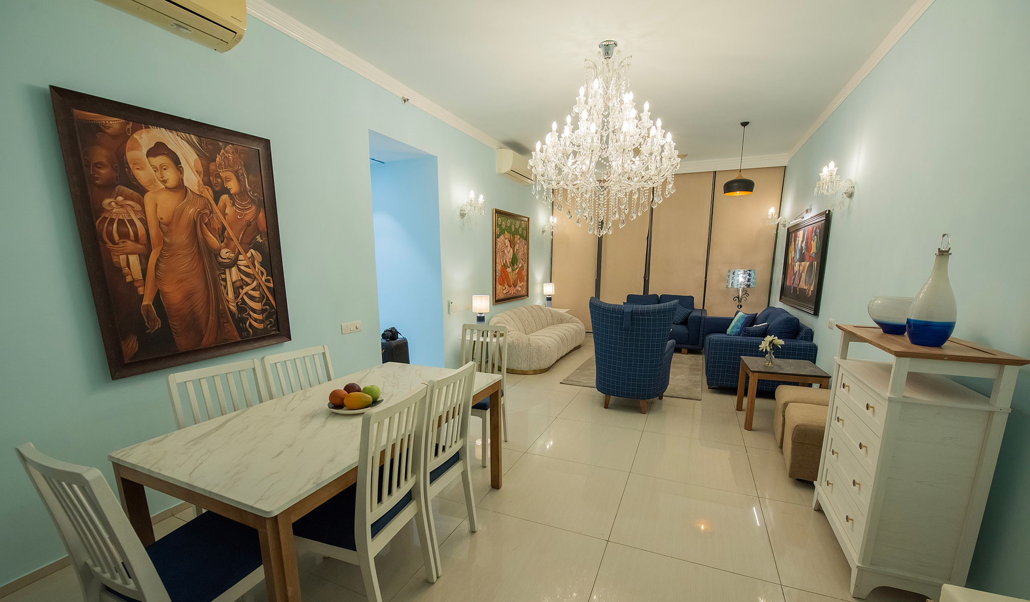 It is a beautifully renovated four-bedroom apartment available for rent. It is designed for those who appreciate aesthetics, comfort, and a culturally rich lifestyle. It's a combination of Art, Culture and Fine Living in Gurgaon.